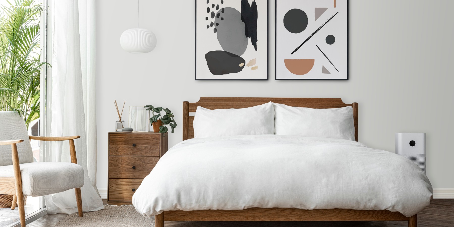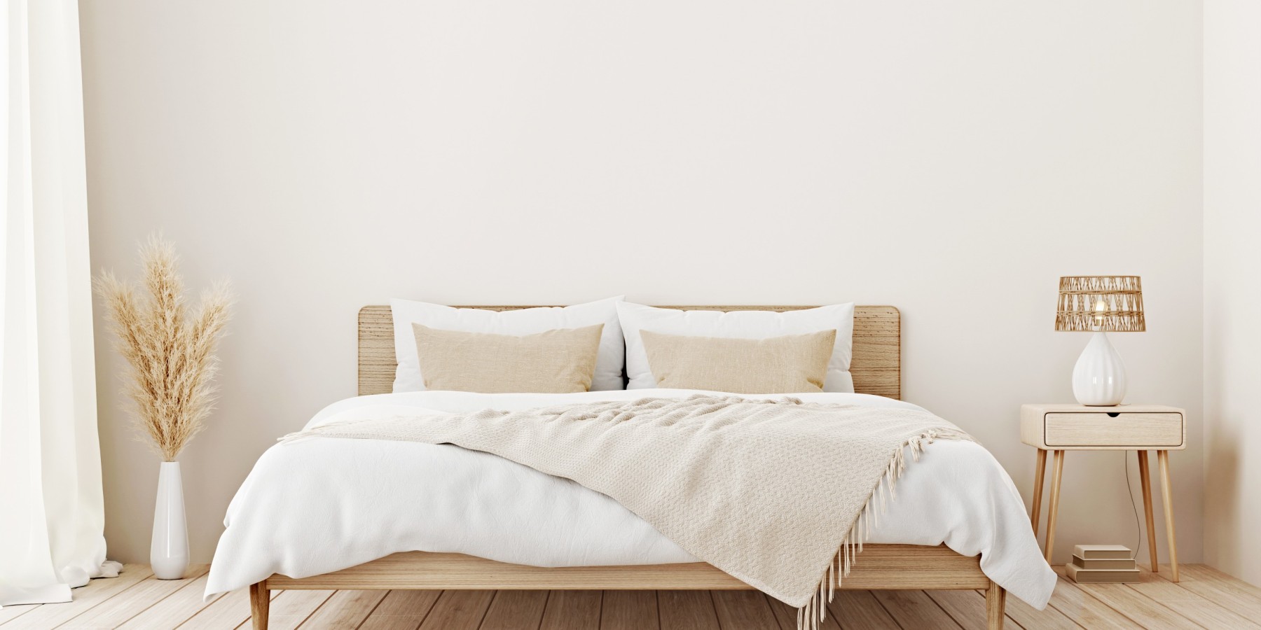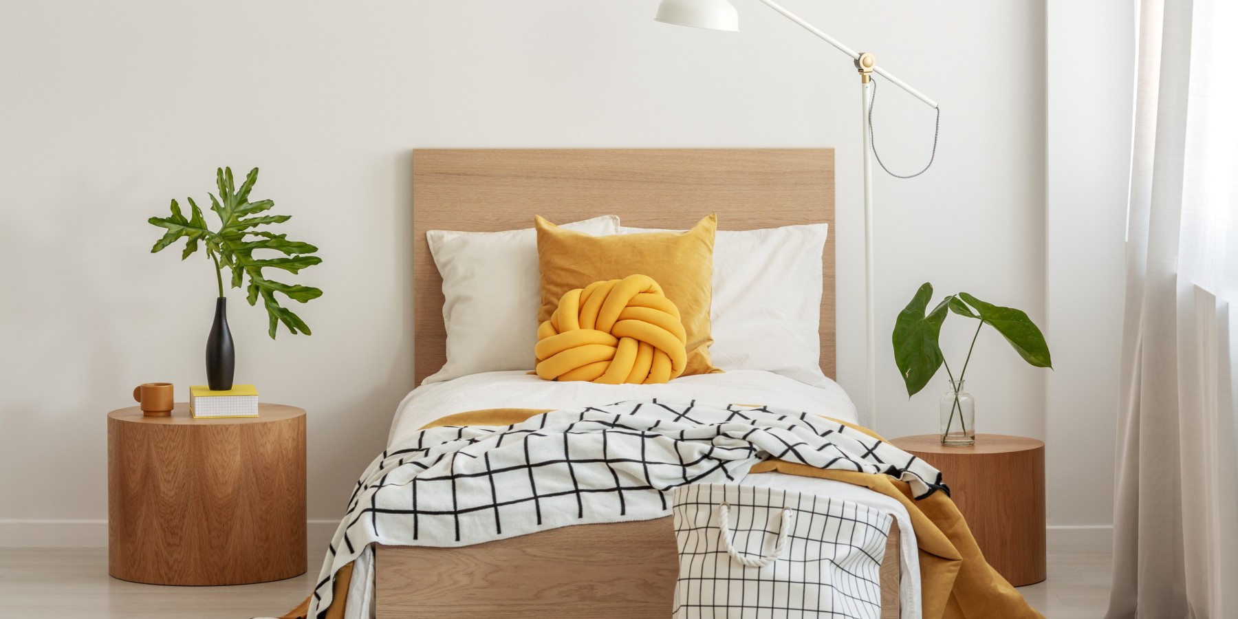 To avoid toe stumping, knee banging and nighttime falls it’s recommended you leave a minimum 60 cm of space around the perimeter of the bed. Anything less than this can cause safety hazards, not-to-mention, ruin the general aesthetic of your space.