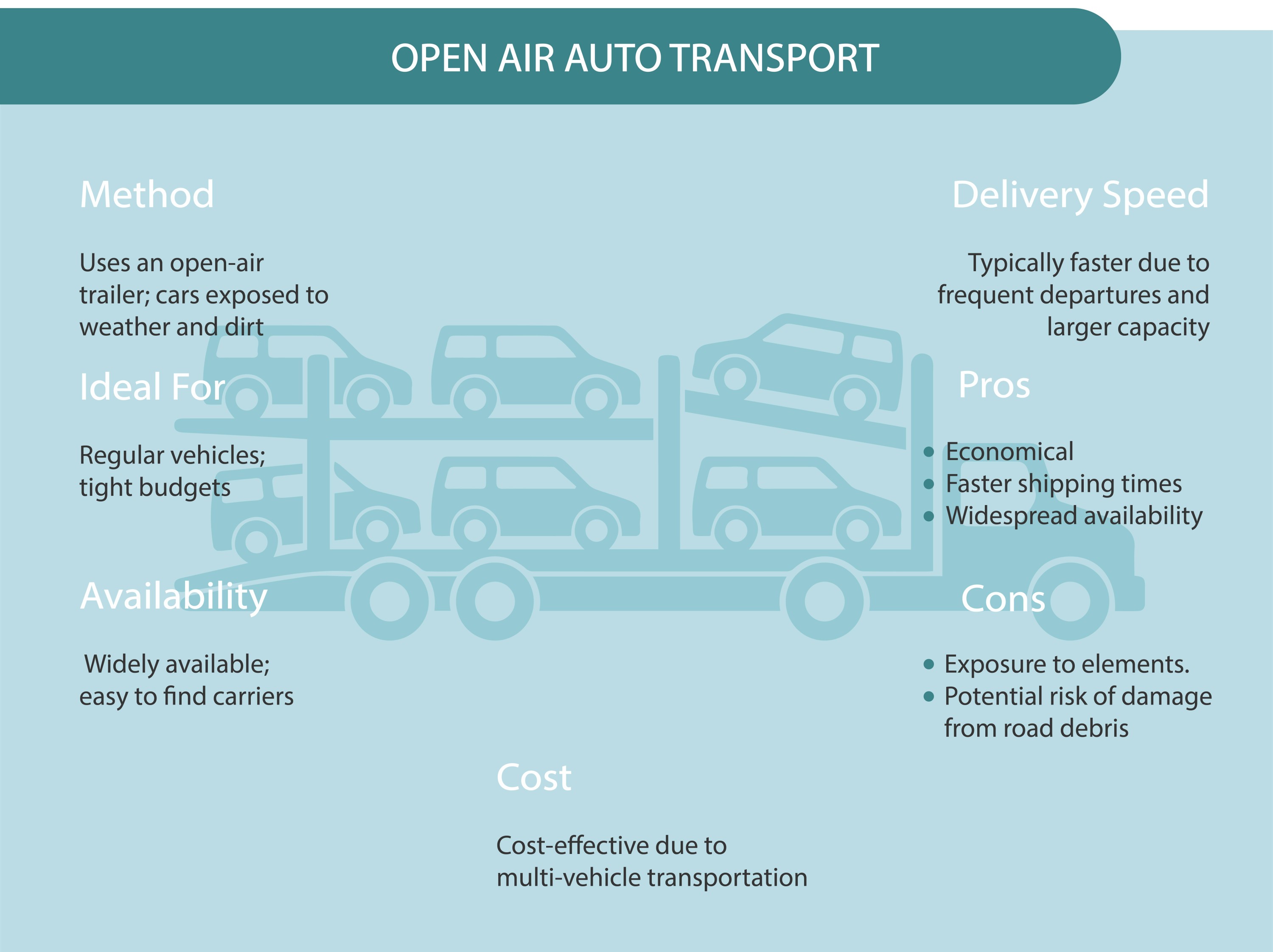 Speed is also a factor to consider when deciding whether to use open-air transport. Open-air transport tends to provide faster shipping times compared to enclosed carriers. This is because open-air carriers often have more frequent departures and can accommodate more vehicles in a single shipment. If you need your car to arrive at its destination quickly, open-air transport may be the better choice.